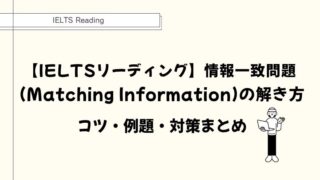 「どの段落を選べばいいか分からない…」「似た内容が多くて迷う…」そんな悩みを持っていませんか?Matching Information問題は、「どこに何が書かれているか」を正確に見つける問題です。一見シンプルですが、探し方を間違えると一気に...