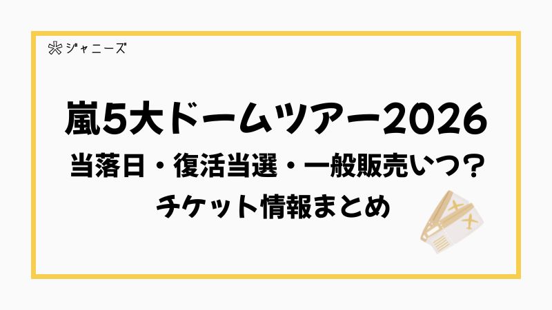 嵐5大ドームツアー2026 当落日・復活当選・一般販売いつ?チケット情報まとめ