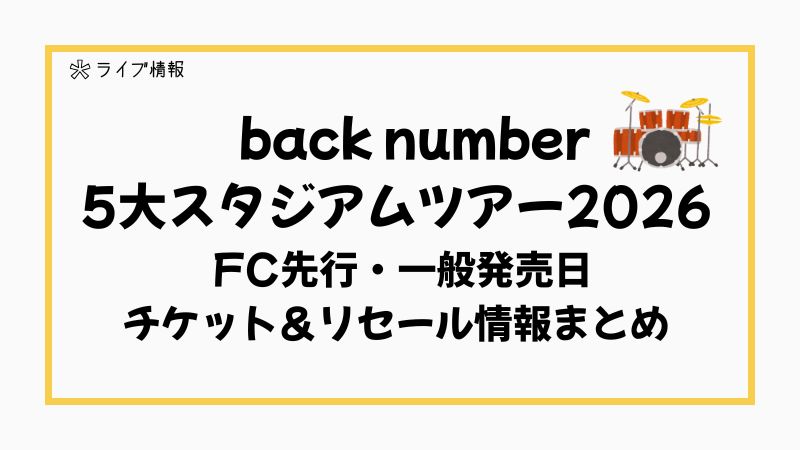 back number (バックナンバー) 5大スタジアムツアー2026|FC先行・一般発売日・チケット&リセール情報まとめ