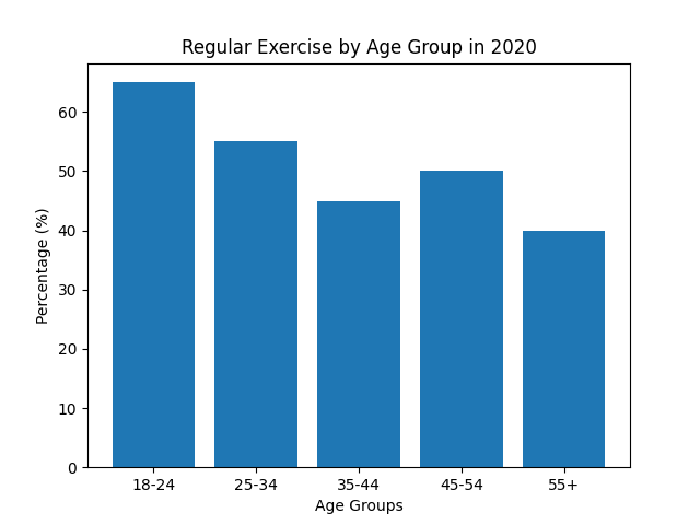 The bar chart below shows the percentage of people in five different age groups who exercised regularly in a particular country in 2020.