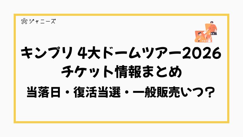 この記事では、キンプリの4大ドームツアー2026「King & Prince DOME TOUR 2026 STARRING」の開催概要やチケット情報(復活当選・制作開放席・一般販売・リセールなど)、アルバムとの関連企画についても、詳細が発表され次第まとめていきます。