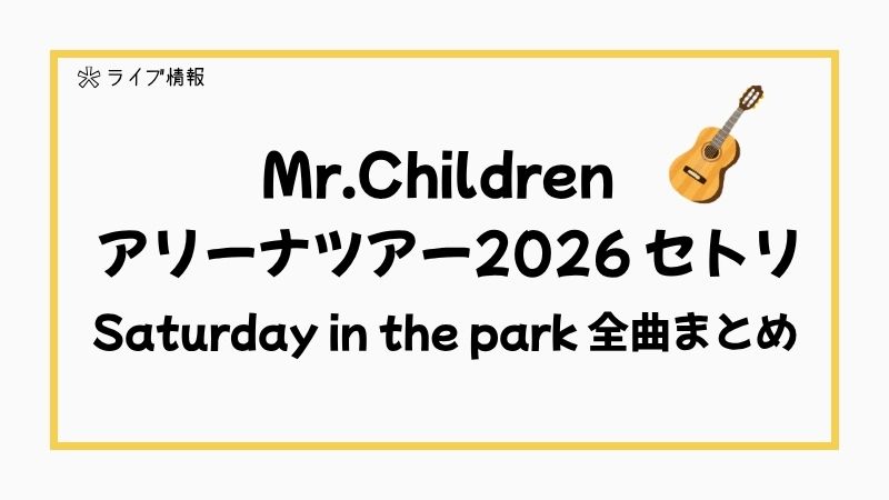 Mr.Children (ミスチル) アリーナツアー2026 セトリ|Saturday in the park 全曲まとめ