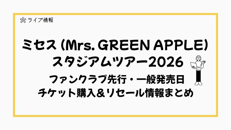 新フェーズ突入と映画化発表など、大きな話題が続くMrs. GREEN APPLEのスタジアムツアー2026は、MUFGスタジアム・ヤンマー長居スタジアムの2都市で開催されます。