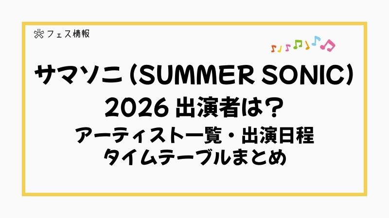 この記事では、「SUMMER SONIC 2026」の出演アーティスト一覧をはじめ、出演日程、タイムテーブル情報(発表次第随時更新)を紹介しています。