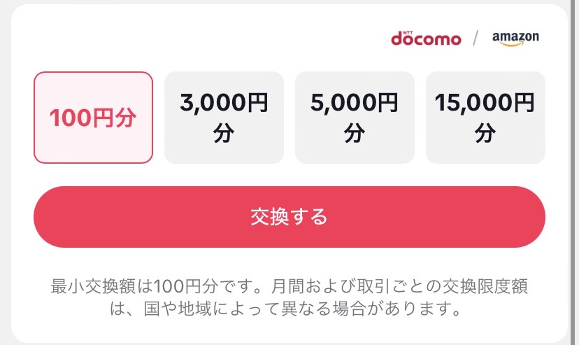 | えらべるPay | 100円ー15,000円 | 4か月~ (交換先により異なる) |