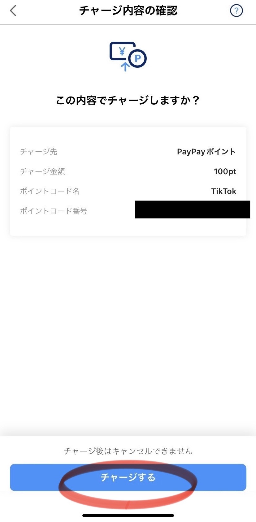 チャージ内容に間違いがなければ「チャージする」をタップします。