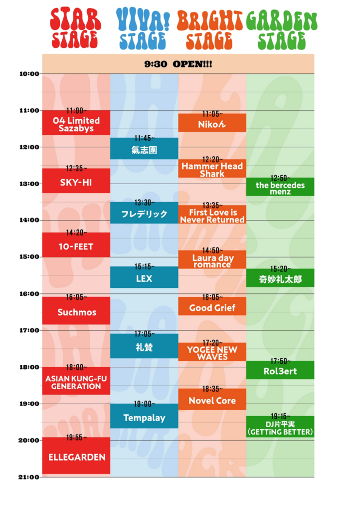 打首獄門同好会/KANA-BOON/サンボマスター/東京スカパラダイスオーケストラ/Fear, and Loathing in Las Vegas/04 Limited Sazabys/BLUE ENCOUNT/ヤバイTシャツ屋さん/UNISON SQUARE GARDEN/ ROTTENGRAFFTY